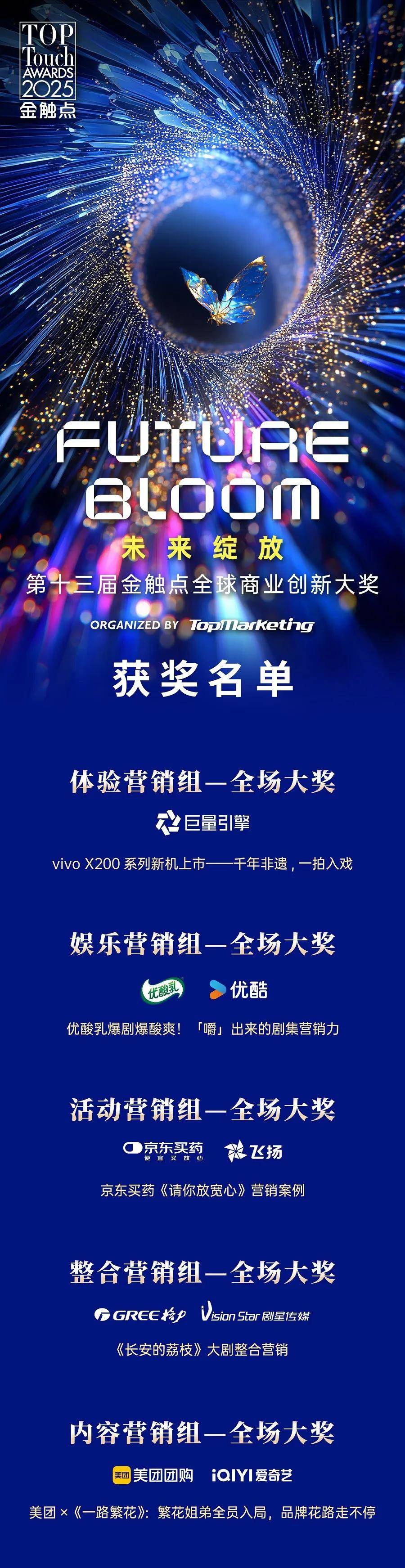 12月17日,由TopMarketing主办【Future Bloom 未来绽放】第十三届金触点•全球商业创新大奖颁奖典礼在北京隆重举行。