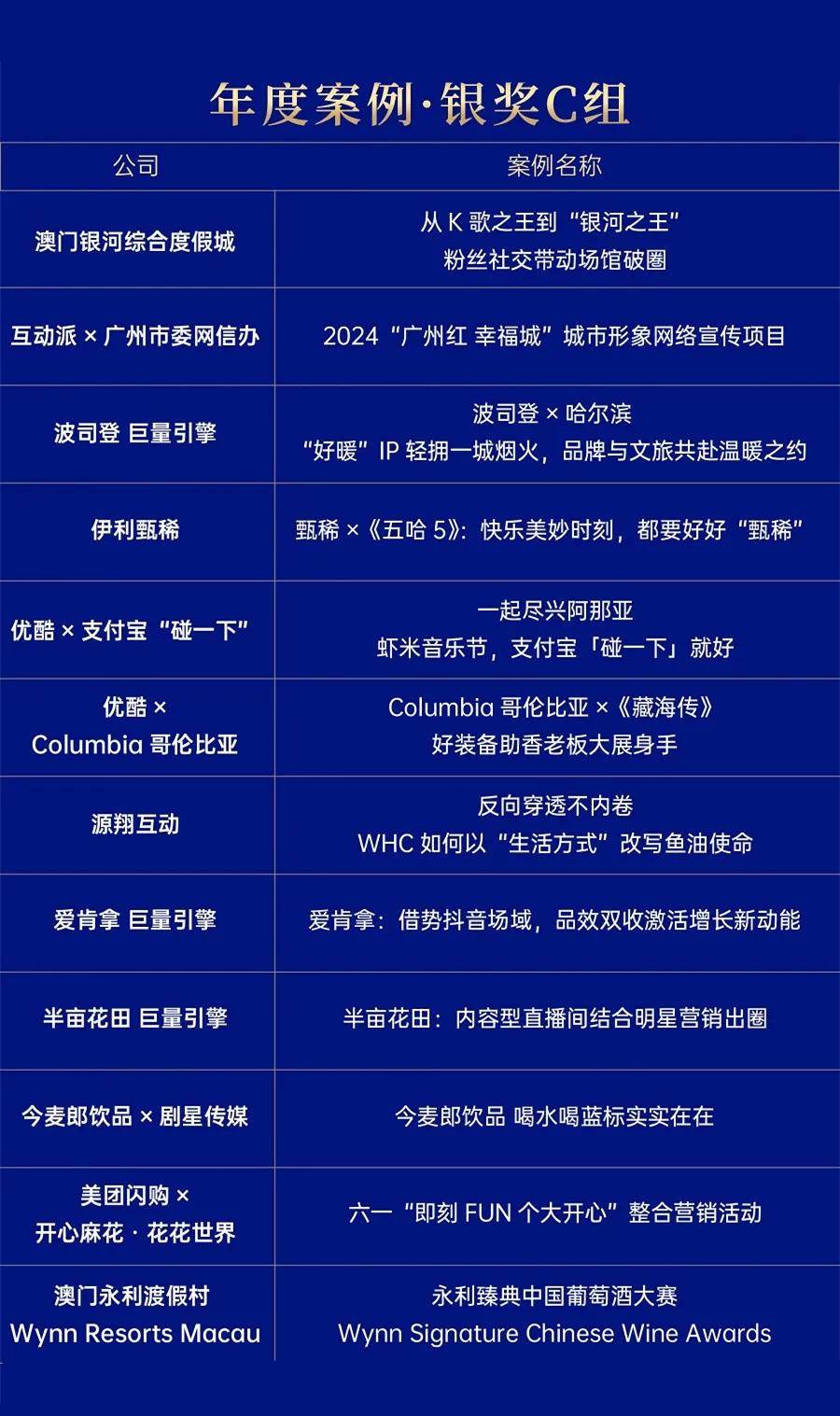 而今年的全场大奖,则是通过全公开、全透明的答辩方式,经过现场50位评审观摩嘉宾共同打分确认通过。评分标准包括了现场表现30%、案例质量70%两个一级指标下的8个细分指标,全面评估案例的创意创新质量与行业启示与趋势引领价值。据参与现场的一位评审介绍,整个过程兼具展示、交流、共创和评审等多重价值,整体体验和现场效果非常沉浸。