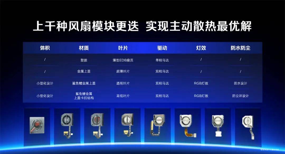 强大的性能释放,离不开强劲的散热能力。作为手机行业主动散热风扇的开创者和引领者,红魔在风冷散热领域深耕了七年,从材质、叶型到防尘静音,历经了上千次方案迭代,一步步推动着手机内置风扇散热技术的发展。