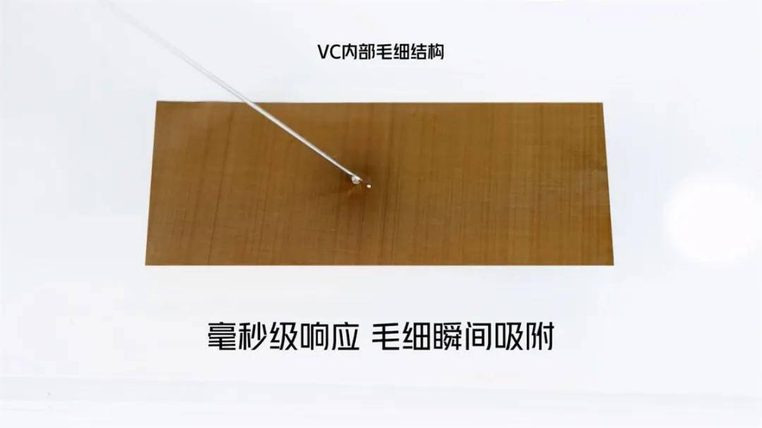 在发布会上,红魔也对VC均热板功能的优势进行了可视化呈现,演示视频中水滴滴在VC均热板之后,被瞬间吸附摊开,这也证明了该VC均热板的超强导热效率。