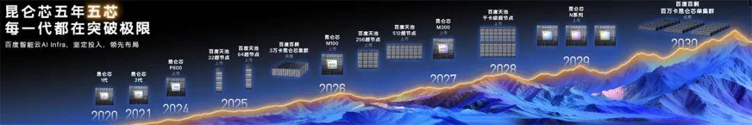 全新一代昆仑芯包括两款产品,其中,昆仑芯M100 针对大规模推理场景优化设计,提供极致性价比,将于2026年上市;昆仑芯M300面向超大规模的多模态模型的训练和推理任务,提供极致性能,预计2027年上市。