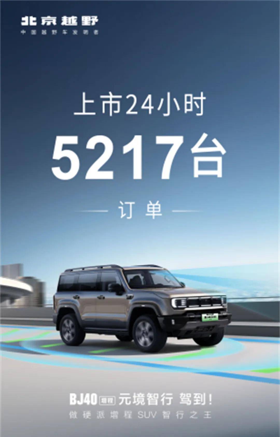 11月14日,BJ40增程元境智行上市24小时订单达到5217台!BJ40增程元境智行版于11月13日正式上市,官方指导价为20.48万元,限时焕新价只需19.48万元(叠加国补和厂端置换后)!