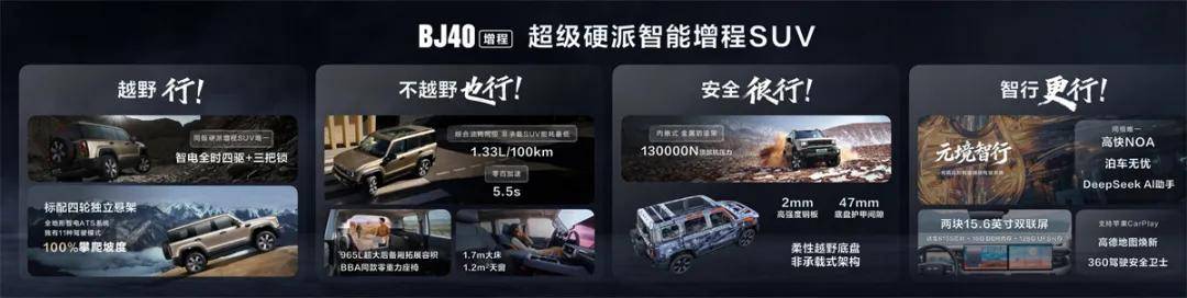 BJ40增程元境智行的热销,更源于其在安全与智行两大核心需求上的极致突破,重新定义了硬派增程SUV的价值标准。