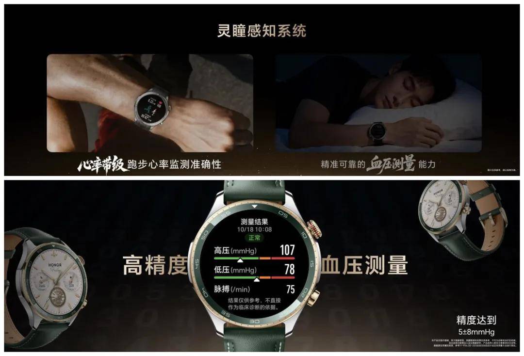 荣耀手表5 Pro搭载创新的灵瞳感知系统,采用全新光学模组与控光玻璃设计,通过优化光路与光源提升信号均匀性及抗干扰能力,确保心率、血压等监测数据精准采集,让智能运动手表拥有从日常管理到风险预警的全场景运动健康守护体系。