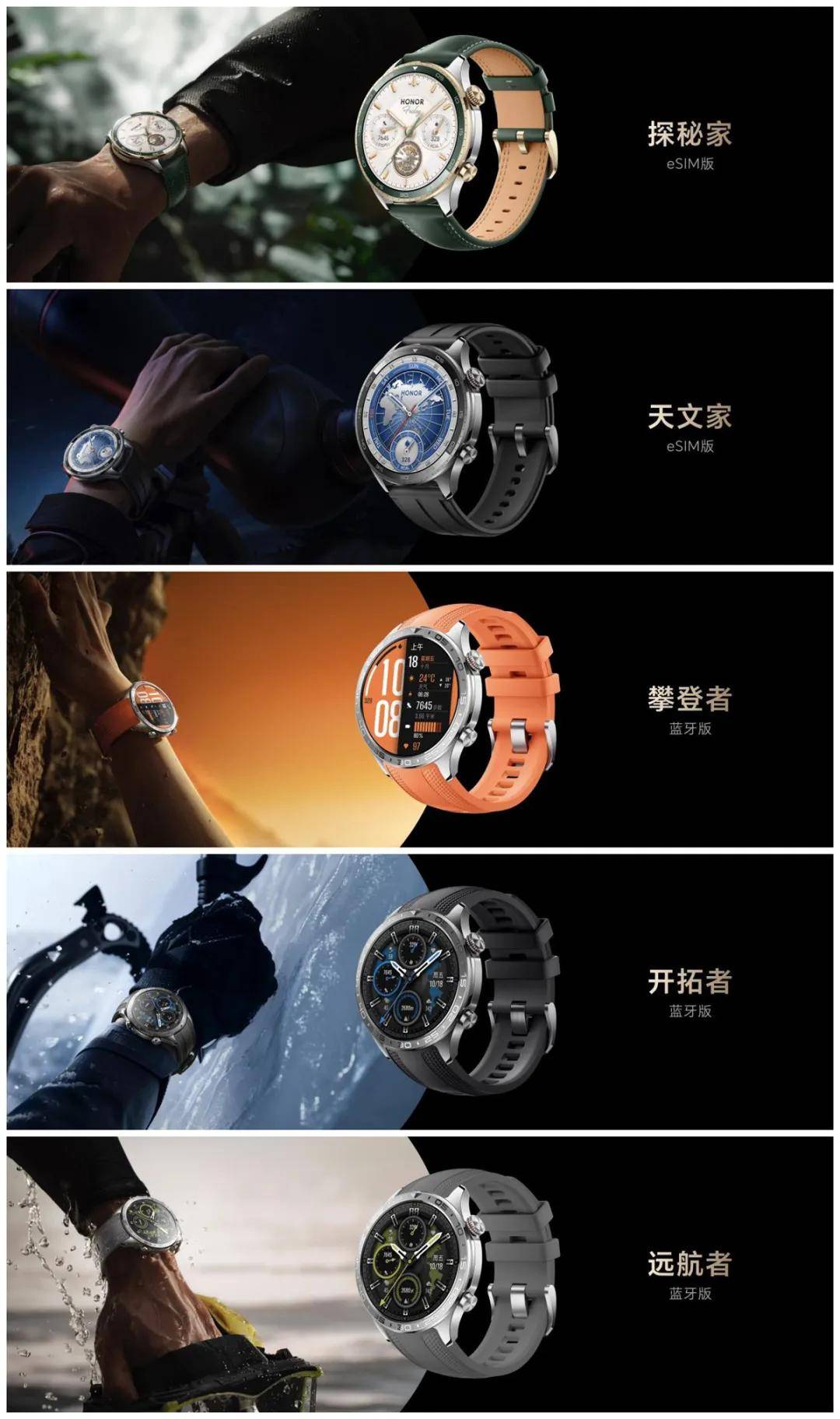 目前,荣耀手表5 Pro已开启首销,共有蓝牙和eSIM两个版本可选,其中蓝牙版本,攀登者(橙色)、开拓者(黑色)、远航者(灰色)首销国补优惠价1359.2元;eSIM版本,天文家(黑色)首销国补优惠价1444.2元,探秘家(绿色)首销国补优惠价1614.2元。首销期荣耀Magic系列用户,攀登者、开拓者、远航者专享国补优惠价1189.2元,天文家专享国补优惠价1274.2元,探秘家专享国补优惠价1444.2元。