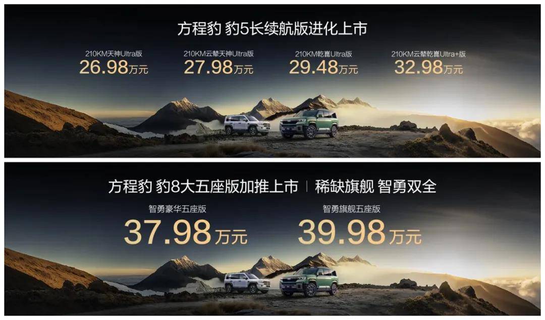 本次惊艳上市的豹5长续航版和豹8大五座版,除了智能、性能科技均升级外,更在在续航、结构、舒适与外观层面实现显著提升。