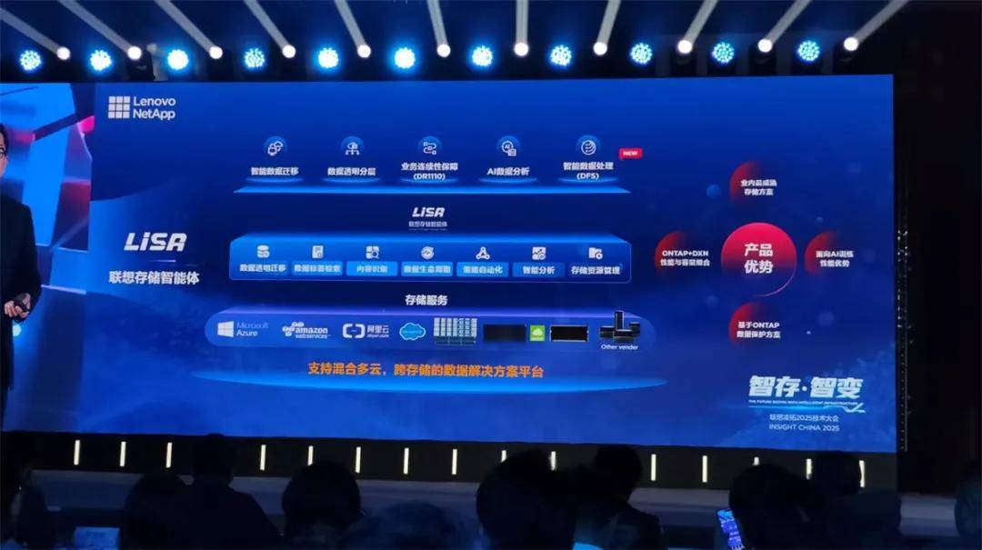 近日,以“智存•智变”为主题的联想凌拓2025技术大会在北京盛大召开。在这场汇聚了众多专家学者、企业代表及生态伙伴的行业盛宴上,联想凌拓正式推出了联想存储智能体(Lenovo Intelligent Storage Agent,以下简称“LiSA”)、Lenovo ThinkSystem DS系列、NetApp AFX系统等创新智慧存储产品系列,为企业构建智能化转型的核心引擎,通过构建智慧数据基础设施,为企业从数据存储管理迈向智能决策创新提供核心驱动力。