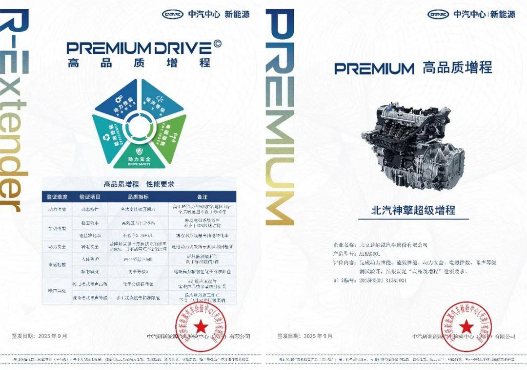 据了解,北汽神擎增程动力历经三轮次耐久验证、30万次启停耐久验证,平台耐久累积验证超2万小时,获得了中汽研“高品质增程”权威认证。